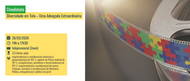 A Escola Judicial (Ejud2), junto com a Comissão Permanente de Acessibilidade e Inclusão do TRT-2, realizará no dia 26 de março, um cinedebate telepresencial (Zoom) sobre o Transtorno do Espectro Autista (TEA).