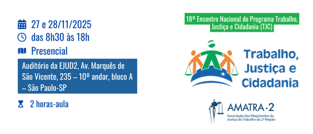 Realização: EJUD2 e Associação dos Magistrados da Justiça do Trabalho da 2ª Região (AMATRA-2)