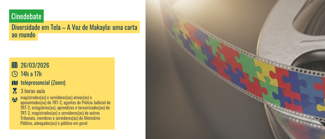 Público-alvo: magistrados(as) e servidores(as) ativos(as) e aposentados(as) do TRT-2, agentes de Polícia Judicial do TRT-2, estagiários(as), aprendizes e terceirizados(as) do TRT-2, magistrados(as) e servidores(as) de outros Tribunais, membros e servidores(as) do Ministério Público, advogados(as) e público em geral