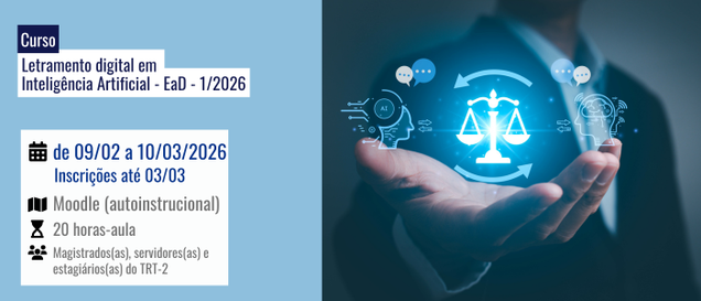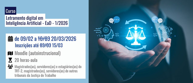O curso de Letramento Digital em Inteligência Artificial é uma capacitação estratégica desenvolvida especificamente para os profissionais da Justiça do Trabalho da 2ª Região.