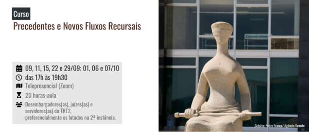 O curso integra a Trilha de Aprendizagem em Precedentes Obrigatórios do CSJT em conformidade com a Resolução CSJT n.° 388, de 30 de agosto de 2024 e faz parte do Programa de Precedentes iniciado em novembro de 2024.