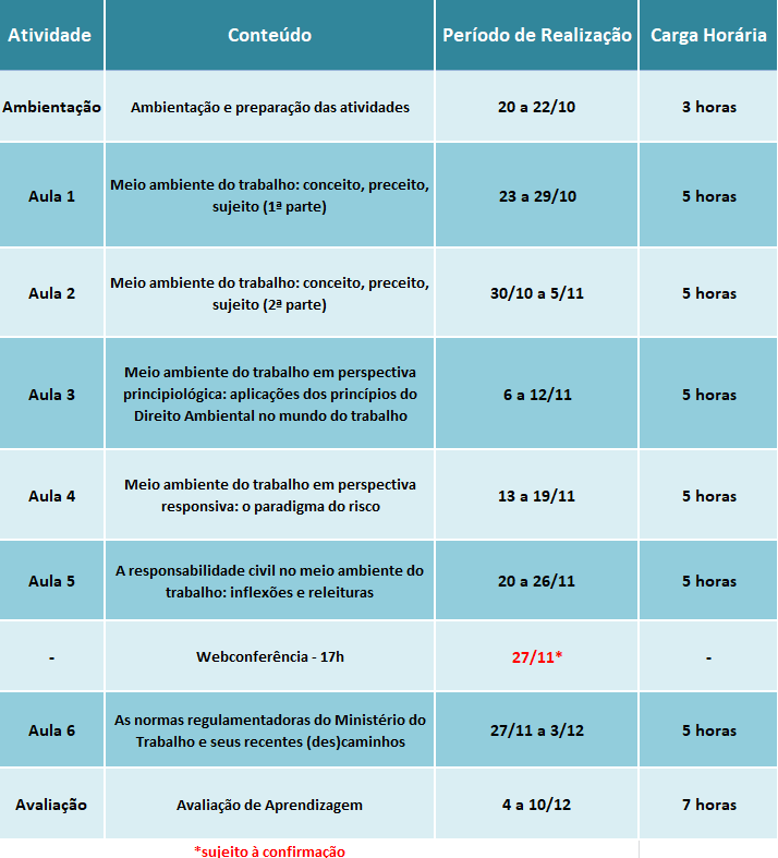 Carga horária: 40 horas aula.