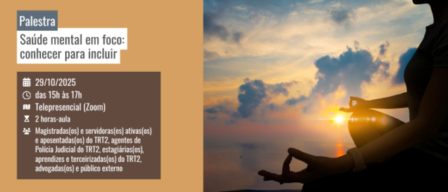 Público-alvo: Magistradas(os) e servidoras(es) ativas(os) e aposentadas(os) do TRT2, agentes de Polícia Judicial do TRT2, estagiárias(os), aprendizes e terceirizadas(os) do TRT2, advogadas(os) e público externo.