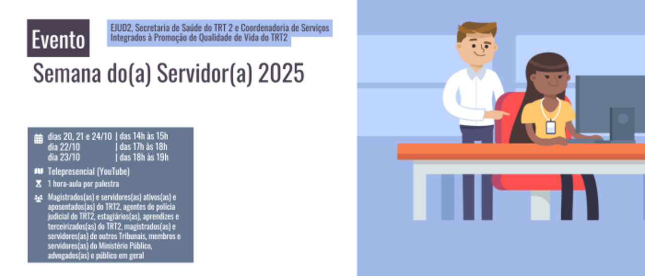 Realização: Esta palestra em especial também tem como realizadores o Programa Trabalho Seguro (PTS-TRT2) e o Grupo de Trabalho Interinstitucional do TRT2 (GETRIN-2)