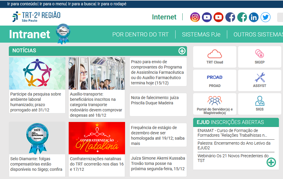 - Em caso de dificuldade de acesso: Envie um e-mail para o nosso suporte: cursoonline@trt2.jus.br.