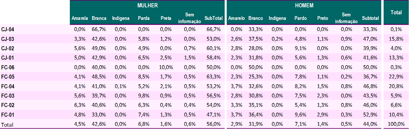 Composição percentual do quadro da magistratura por cargo, segundo gênero e cor/raça Janeiro/2026