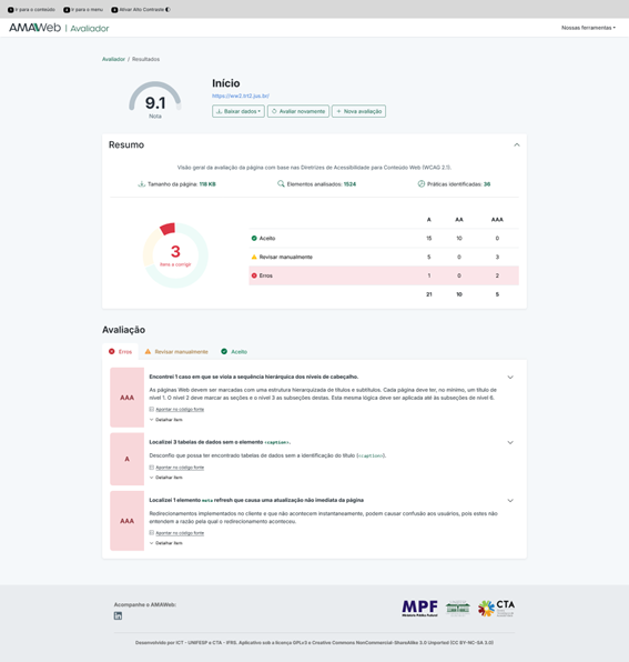 1. AMAWeb Avaliador - verifica as condições de uma página web às diretrizes de acessibilidade do WCAG (Web Content Accessibility Guidelines)