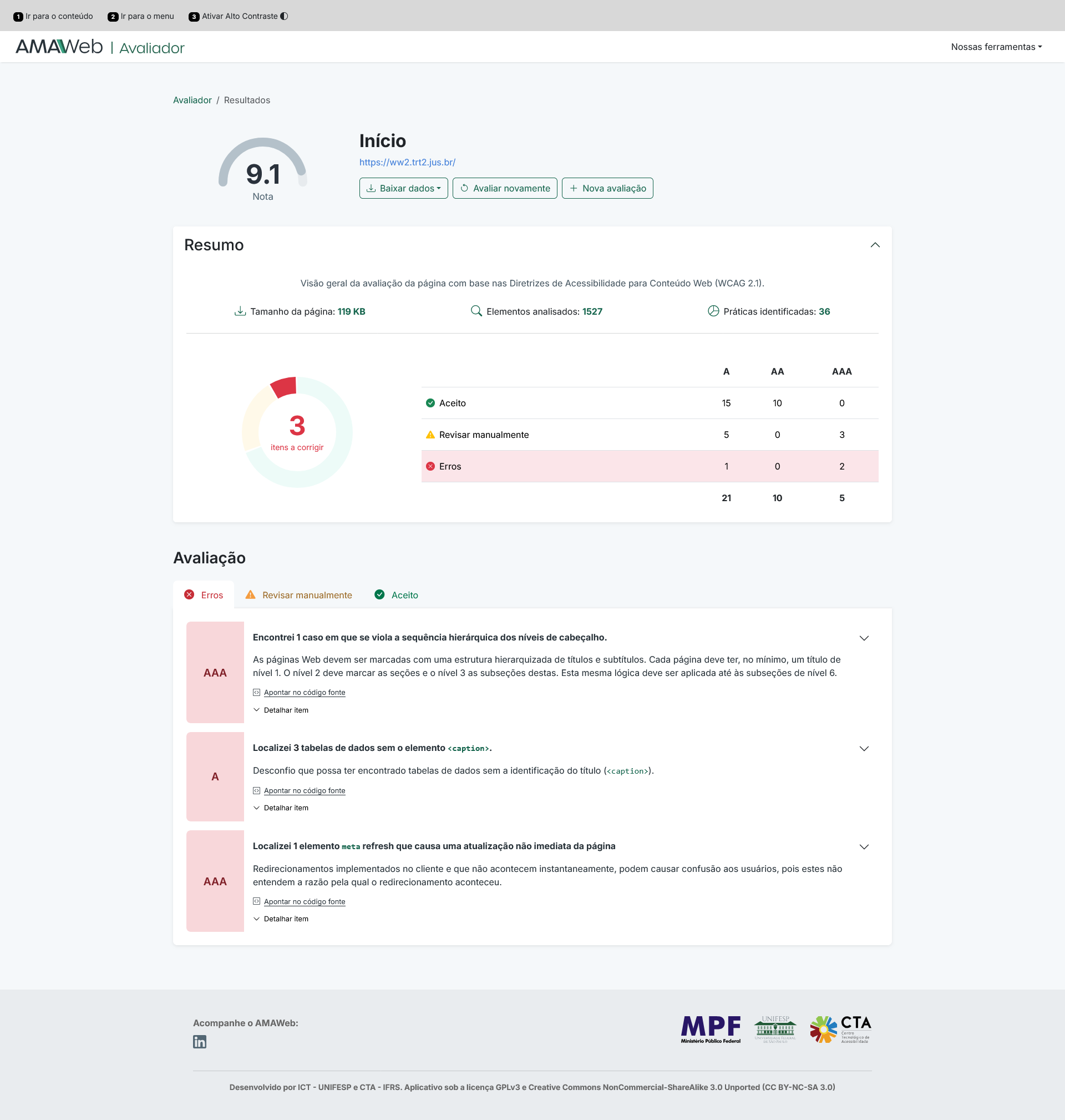 AMAWeb Avaliador - verifica as condições de uma página web às diretrizes de acessibilidade do WCAG (Web Content Accessibility Guidelines)