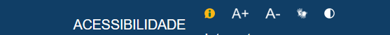 Tamanho da fonte: representado por A+ (ao clicar, aumenta o tamanho da fonte do texto) e A- (ao clicar, diminui o tamanho da fonte do texto).Auto-contraste: